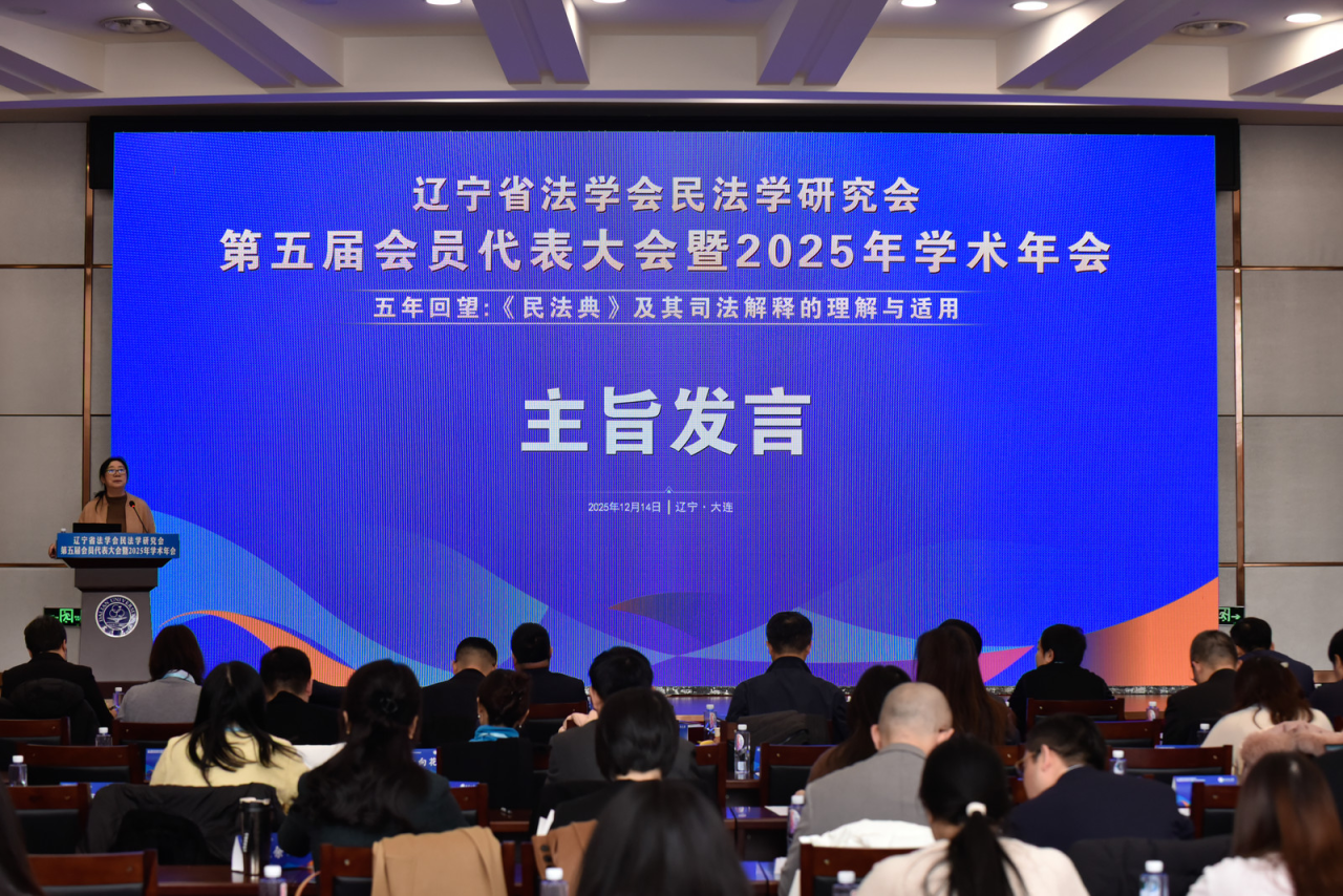 12月14日,辽宁省法学会民法学研究会第五届会员代表大会暨2025年学术年会在大连召开。本次年会由辽宁省法学会民法学研究会主办,大连大学法学院承办,辽宁德中律师事务所协办。来自省内高校、科研机构、法院、检察院、律师事务所等单位的170余位法学法律界代表参会。会议围绕“五年回望:《民法典》及其司法解释的理解与适用”这一主题,就《民法典》实施中的重点问题与民法基础理论展开深入研讨。我院法学一级学科带头人丁慧教授、副院长刘耀东,教师武胜男、林子樱、董超以及多名研究生参加会议。